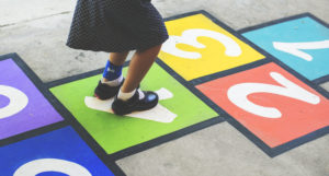 Young girl playing hopscotch